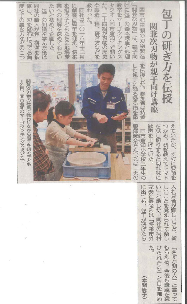2019年3月26日(火)の中日新聞朝刊に先日行われた、「包丁キッズ養成イベント」の様子の記事が掲載されました。
