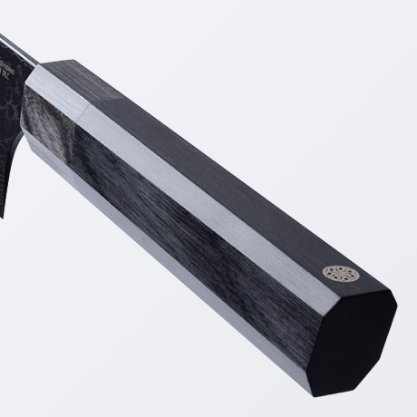 ハンドル材には8角の積層強化木を使用し、握りやすさと和の雰囲気を感じるデザインを追求。握ったときにも目に入る位置に装飾を施し、高級感あるスタイリッシュなデザインに仕上げています。